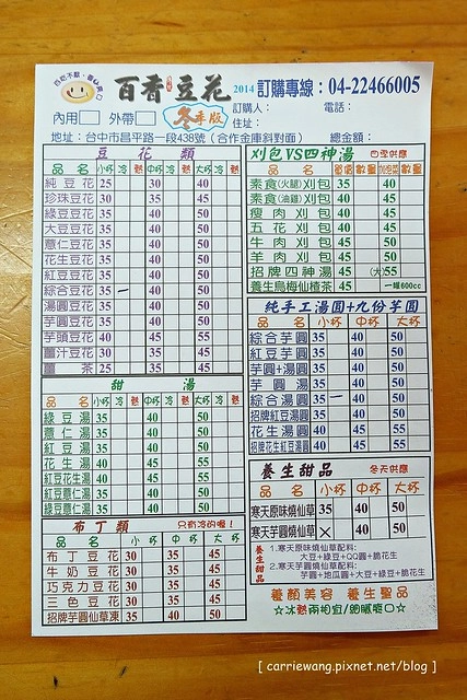 《百香豆花》位於昌平路靠近《85℃》的地方,我有時候是晚上下班會繞過來買一碗豆花or湯圓,這好像是我們第一次來內用…