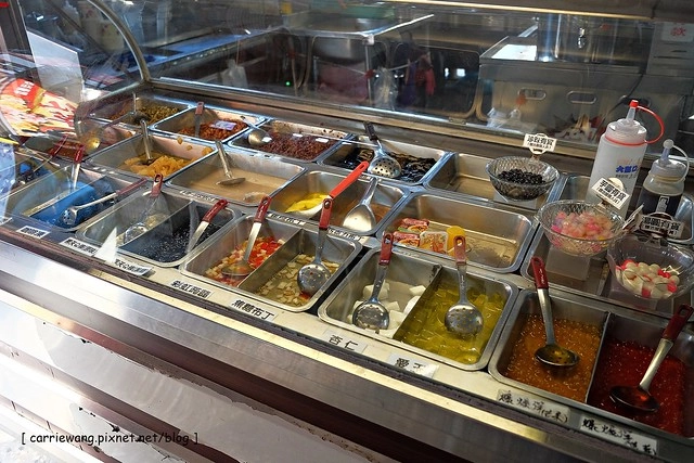店裡以賣豆花、湯圓和仙草凍為主,櫃子上還有看的見的料可以選…