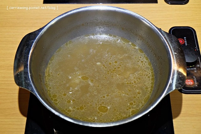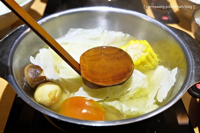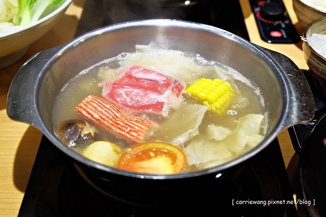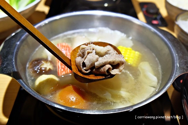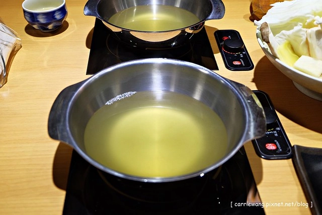 日式高湯…採用正統日式涮涮鍋的作法,使用昆布為湯底,加上柴魚和蔬菜熬煮而成…
