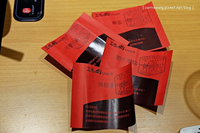我們摸到可樂一杯、肥牛單點一份、魚包蛋一份和雞蛋一顆…(聖誕套餐可以摸兩次…)…效期到4/30為止,有需要的網友請在粉絲頁留言,我會把兌換券寄給你…^^
