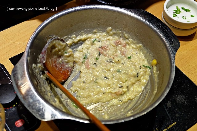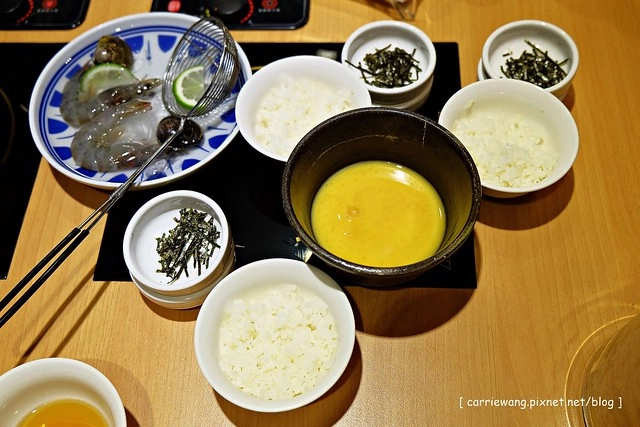 火鍋吃完之後,服務人員繼續送上材料,要幫我們煮雜炊…