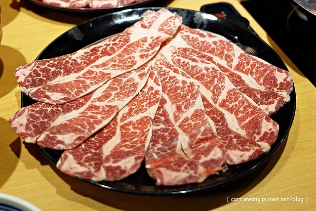 《三道一鍋》使用的是美牛,厚達0.2cm,而且油花分佈的超美的…