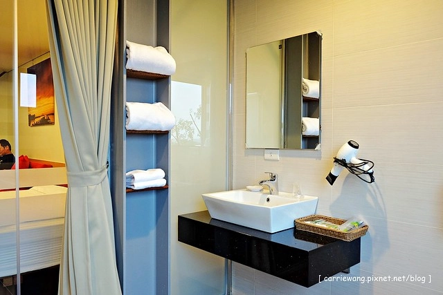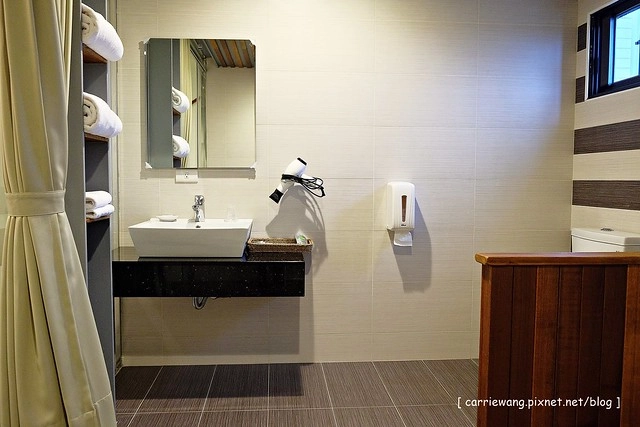 洗手檯…旁邊有放浴巾和毛巾,是棉質的,不是那種不織布的唷!