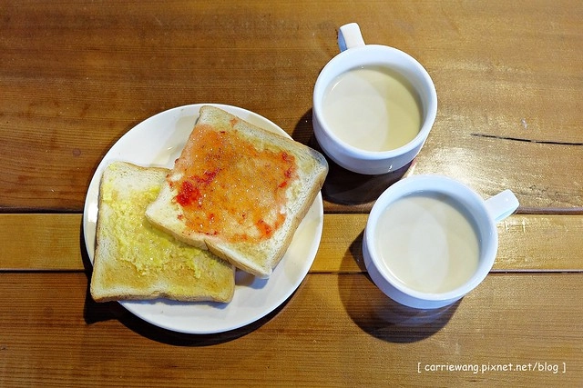 果醬有奶酥和草莓兩種選擇,豆漿有溫的也有熱的,讚讚讚!