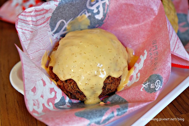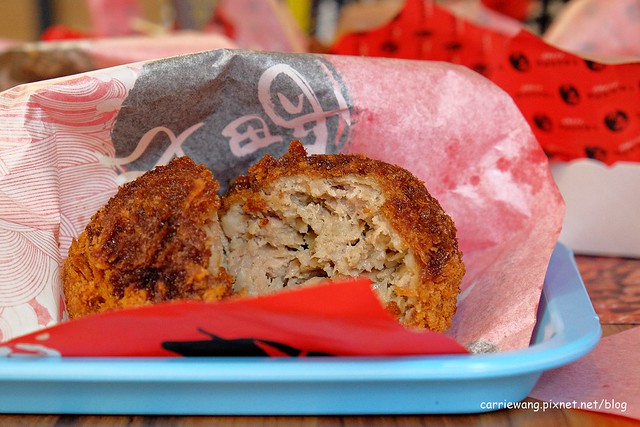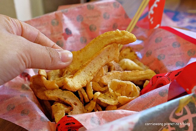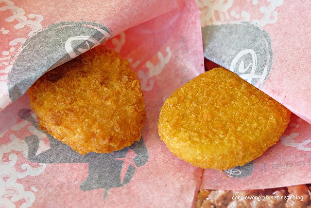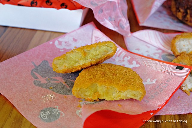 咖哩口味 – 這一道味道就顯得濃郁許多,我們因為拍照的關係所以食物放的比較久,沒想到冷了之後也不會覺得油膩噁心,口感還是外酥內軟說…