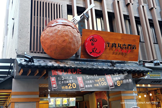 店門口就掛著一顆大大的牛肉丸,非常的吸睛,整個裝潢很有日式風情,有一點像是置身在日本東京街頭的fu吧?