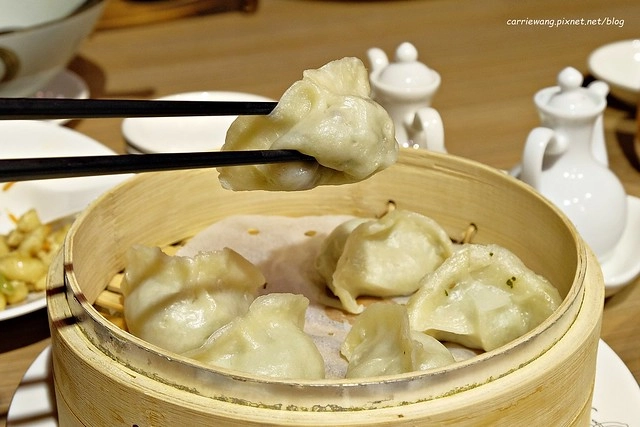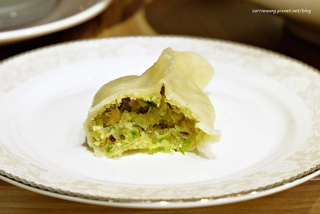 內餡就是芹菜、冬粉、香菇…吃起來味道很清香,蒸餃皮比較厚一點,咀嚼起來很有口感…