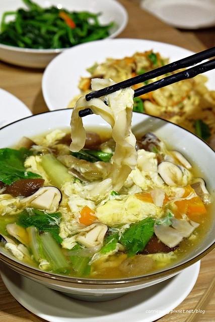 這道麵條是使用刀削麵,吃起來很有嚼勁又很彈牙,配料的部份有滿滿的蔬菜類,營養很均衡哦!