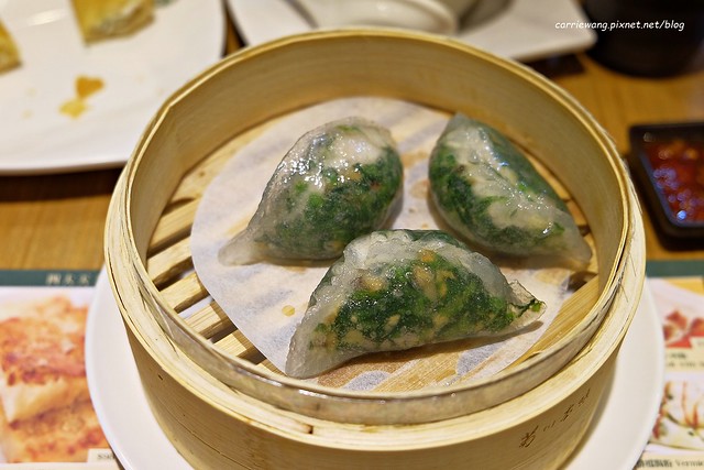 鮮蝦菠菜餃 – $98元,皮很薄,吃起來有點軟Q,內餡還滿清爽的…