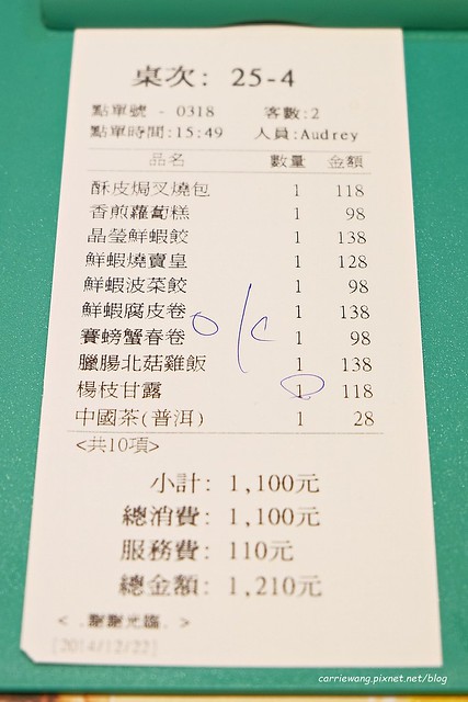 兩個人吃了 $1210元,價格還可以接受,而且外帶了1/3以上…(都是某人亂點的結果…