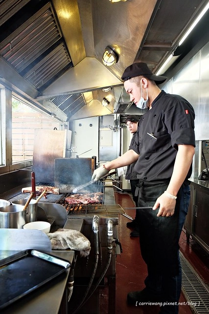 廚房有點半開放式,從門口就可以看到窗後師傅們努力烤牛排的身影…
