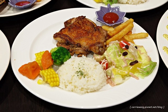 特別一提的是~side dish除了青花菜和玉米之外,還有紅蘿蔔…