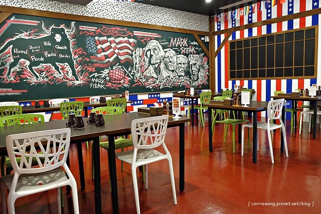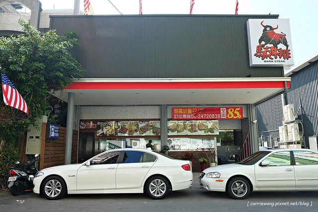 為了避免消費者混淆,所以《美之牛》在台中使用全新品牌重新開始,餐廳的名字叫做《馬克碳烤牛排》,地點位於大墩四街上,門面還滿大的…