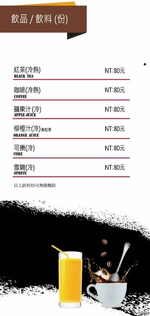 PS.單點+ $100元升級套餐,附:沙拉、濃湯、麵包、甜點和飲料…(飲料是無限暢飲的!)