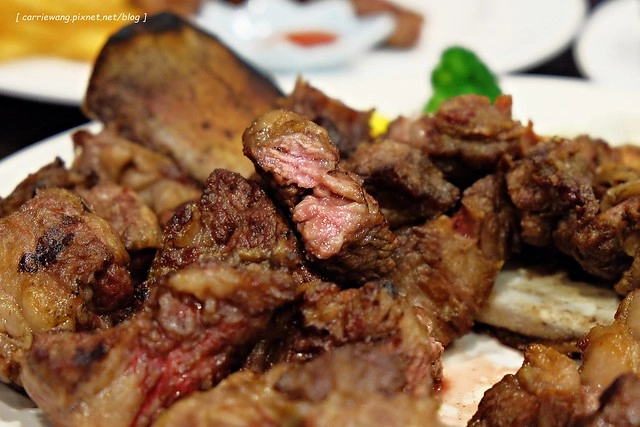 使用帶骨牛小排的部份,外表烤的非常油亮油亮,一塊牛小排可以品嚐到三種不同的美味…