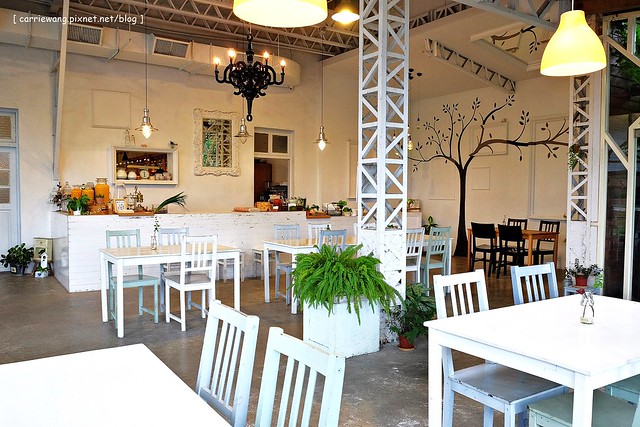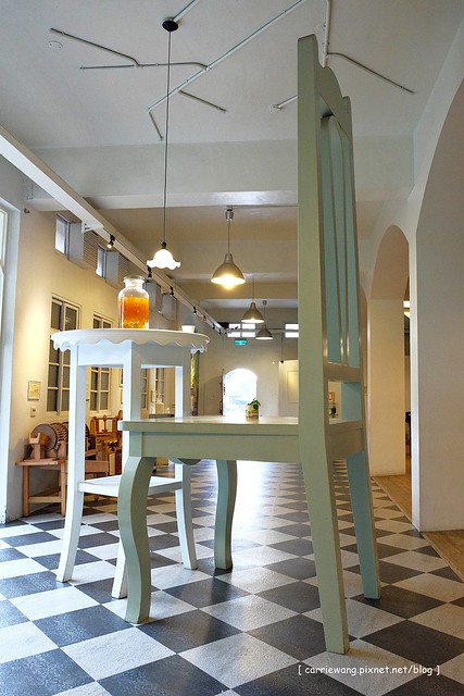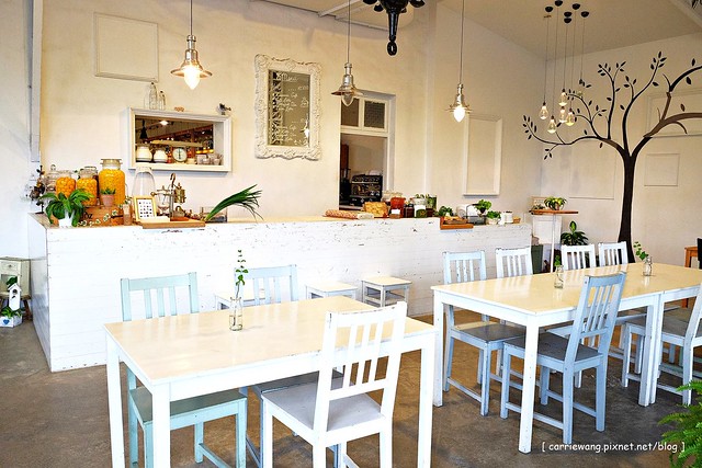 以白色為基底的裝潢,看起來乾乾淨淨的,這裡好像有賣咖啡和點心…不過這天時間還滿早的,所以餐廳裡面沒什麼人…