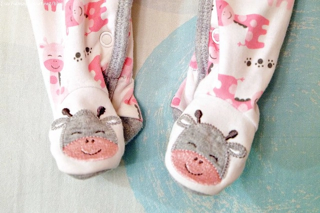 PS.初生兒的手非常的小,所以手套容易脫落,當父母的只好勤勞點一直撿一直幫他穿戴回去…