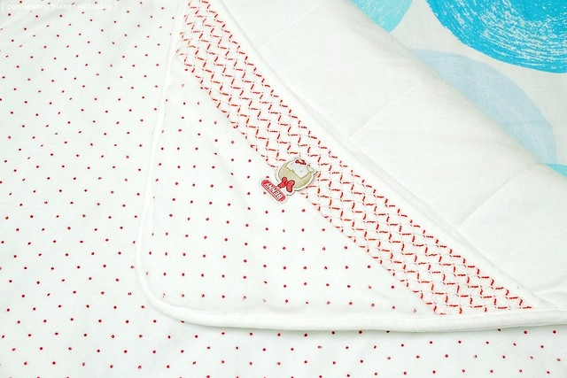包巾最特別的地方是,有一個角落會有三角型設計,這個放在小寶寶的頭下方,包起來的時候就可以當寶寶的帽子了…大概就像小紅帽那樣…(請自已想像!XD)