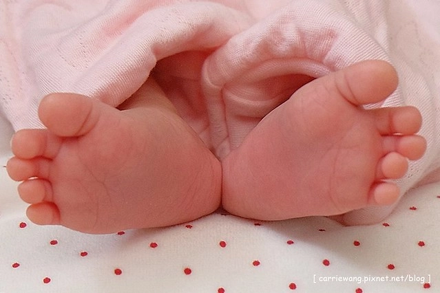 2. 小兒科醫生說,新生兒的手腳容易涼涼的,要觀察他衣服是否穿的夠,只要看他脖子後面的地方,摸起來是熱的就OK了,真的不需要穿太多哦!