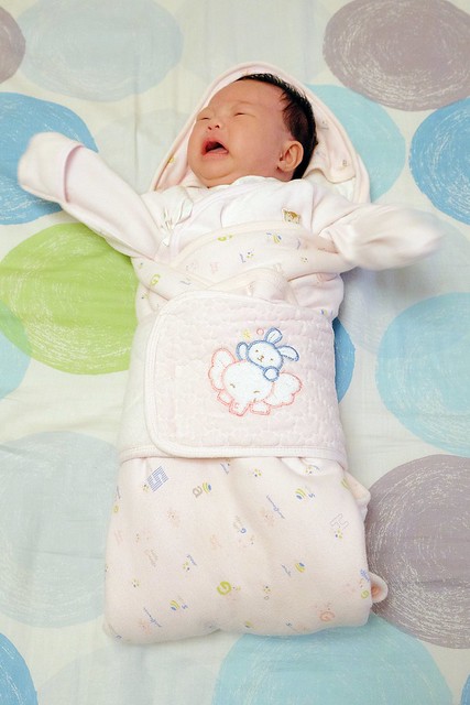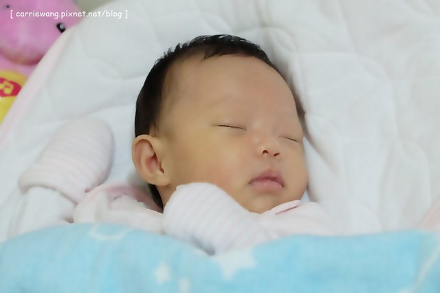 PS.應該把手手包在包巾裡面的,但是小櫻桃個性很扭,她不喜歡被包手,如果硬把她包起來的話,她會一直哀爸叫母的好像被綁架了一樣…