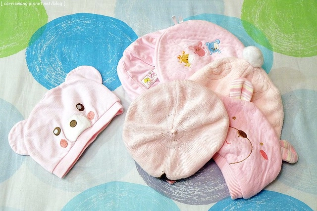 而且厚!新生兒不管買多小的帽子戴起來都還是會蓋到眼睛啦!所以咧!個人覺得帽子可以等寶寶三個月大之後再買就好…