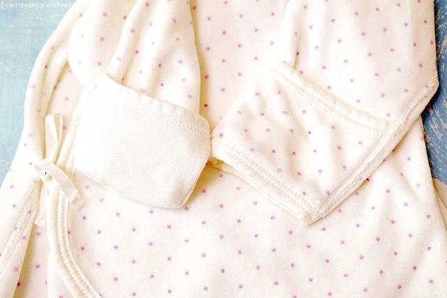 蝴蝶裝的手腕部份設計的很貼心,只要把多出來的那塊布反折就可以包覆小寶寶的手,這樣一來也不用戴手套了耶!(這發明真是應該得到諾貝爾獎媽媽獎…XD)