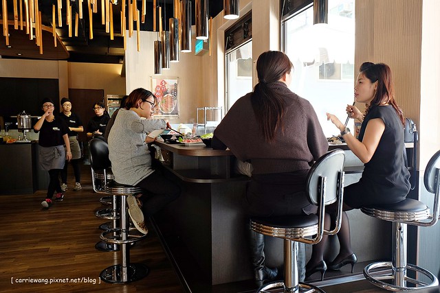 除了餐廳中間四人桌的位子之外,最旁邊還有吧檯區,如果一個人用餐的時候,這個區域還滿適合的,不會有孤單感…