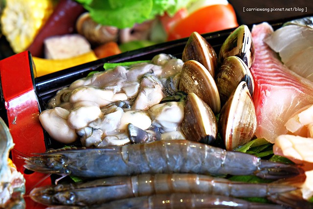 蚵仔是我的罩門,全部塞給Teresa了…(她這天應該是吃到很無言,因為我塞很多東西給她…【台中火鍋推薦】錢都日式涮涮鍋@西屯旗艦店。平價小火鍋也可以吃到超澎派的海鮮,還有飲料和霜淇淋無限供應 @飛天璇的口袋)