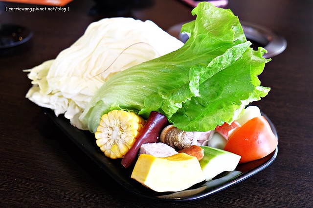 菜盤…我喜歡這樣的配色,看起來新鮮又有活力,紅、橙、黃、綠、藍(沒有)、靛(也沒有)、紫…啊!那剛好五行!【台中火鍋推薦】錢都日式涮涮鍋@西屯旗艦店。平價小火鍋也可以吃到超澎派的海鮮,還有飲料和霜淇淋無限供應 @飛天璇的口袋
