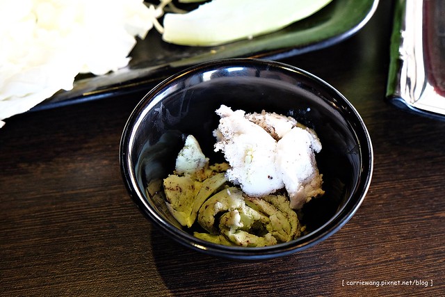 醬料…這碟是Teresa的,她弄的比較漂亮,所以我拍她的…(因為我那碟弄的像是廚餘,不敢拍…【台中火鍋推薦】錢都日式涮涮鍋@西屯旗艦店。平價小火鍋也可以吃到超澎派的海鮮,還有飲料和霜淇淋無限供應 @飛天璇的口袋 )