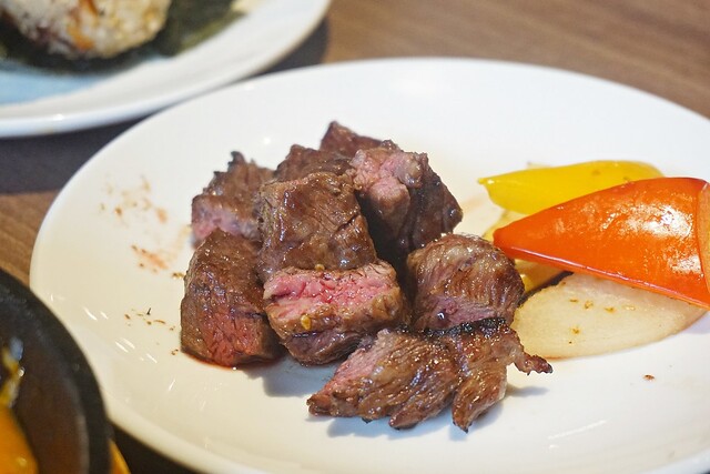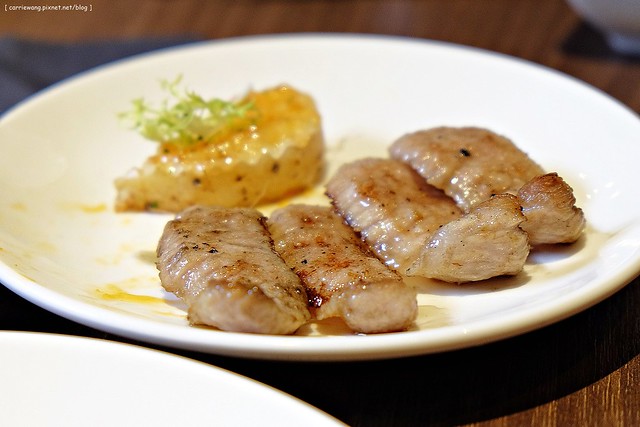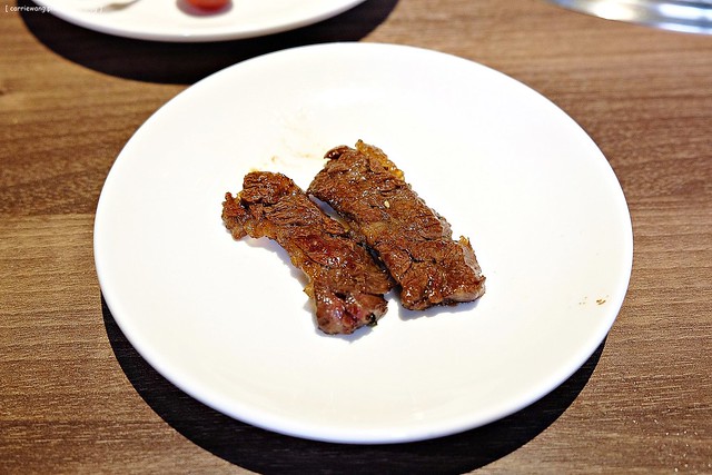 油花分佈的很均勻,但是吃起來卻不會有油膩感,烤的非常適中,口感軟嫩邊邊部份又帶了些焦香氣…