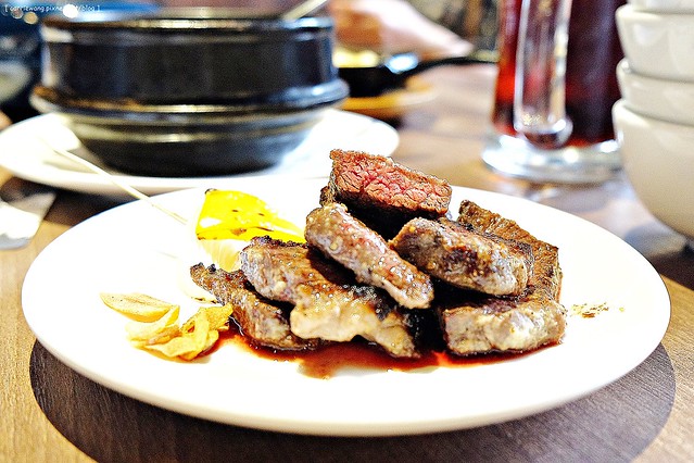因為醃漬過的關係,所以比起其他道的牛肉來說,這道味道來的重一些,吃起來酸酸甜甜帶著牛肉的香氣,也不會過於難以咀嚼…