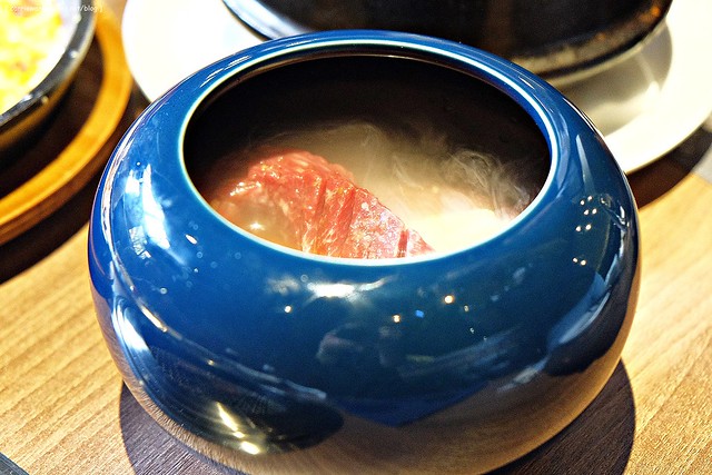 真不虧是9A級的和牛,肉質非常的香甜軟嫩,咀嚼後肉汁在嘴裡散開來,非常的美味,大概是這天吃到最令人想要轉圈圈的一道了!