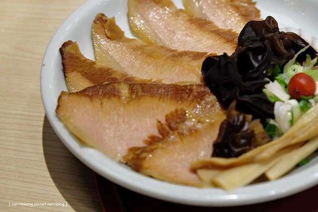這是我們第一次嚐試鹽味拉麵,湯頭的部份還不錯,以日式拉麵口味來說算是有層次感卻不死鹹,而且還有豚骨的香氣,入口帶點黏膩感…
