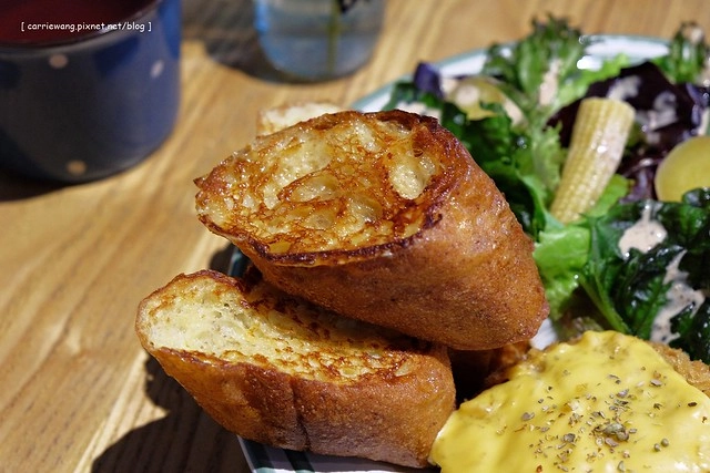 法國麵包的部份外酥內軟,但是我個人偏好蛋香氣再濃一點…