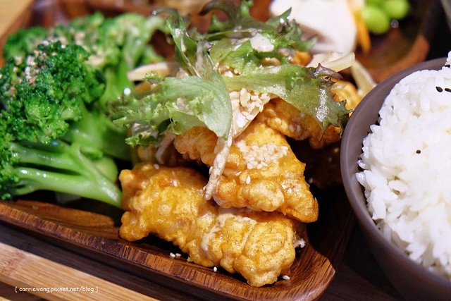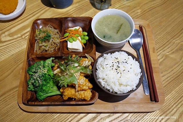 醋漬唐揚雞肉定食 – $270元,我覺得於光很好的一點是:除了早午餐之外還有提供定食,照顧到我們這種老婆是西式口味,老公是台式口味的家庭…