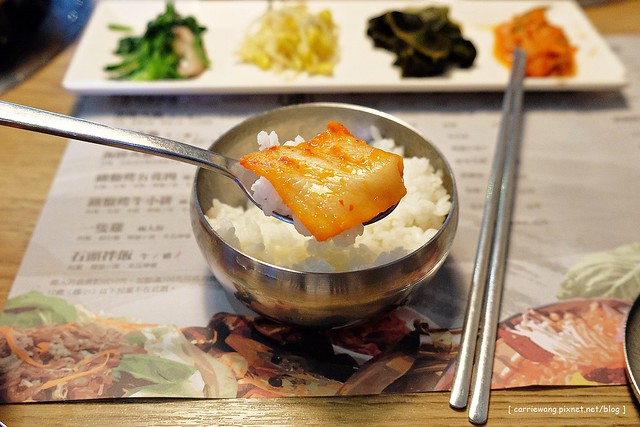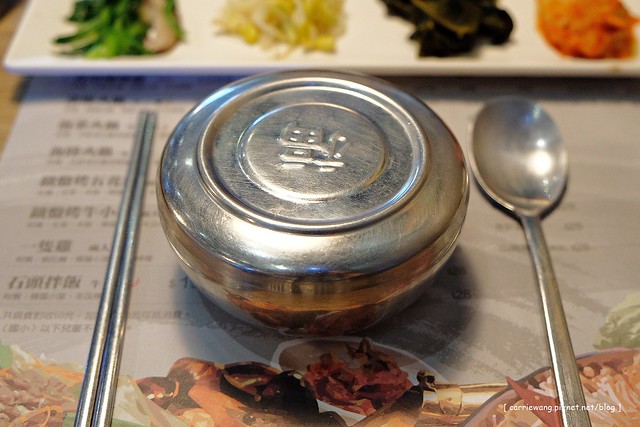 小菜總共有四種,我比較喜歡泡菜,單獨搭配白飯就很好吃,而且用韓式餐具吃飯感覺有點像在辦家家酒…