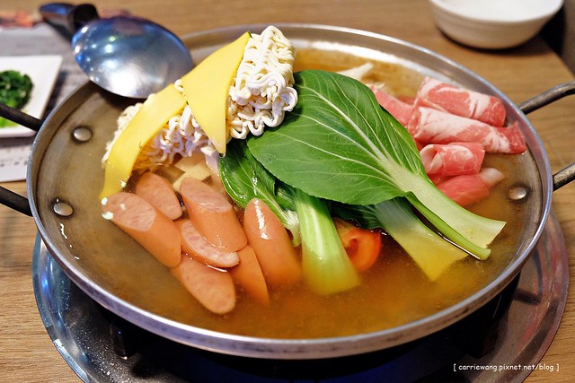 部隊火鍋 – $288元,我覺得部隊鍋還是在韓國吃的比較澎派又好吃說,不過《黃鶴洞》的部隊鍋還滿便宜的就是…