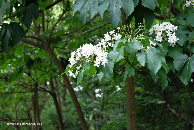 這天看到停車場裡面有很多遊覽車,看來也是有旅行團是排賞桐行程的耶!