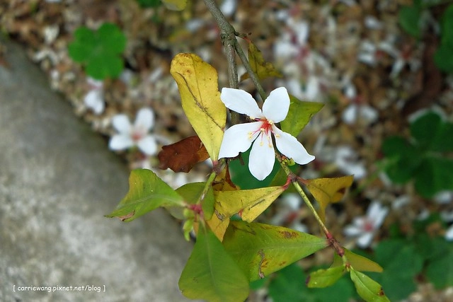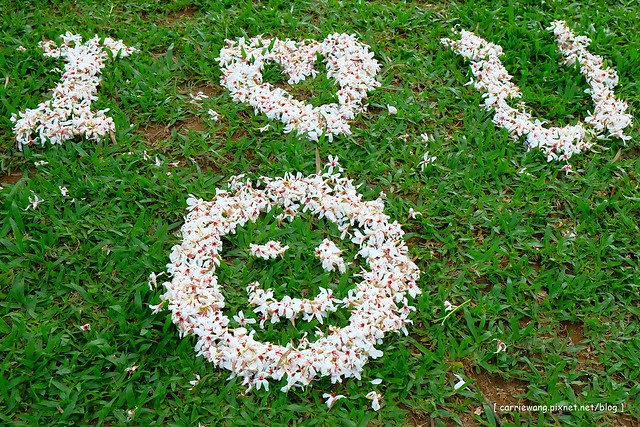 一旁有人在排桐花愛心,跟他們借拍了一張…(哈哈,感謝,感謝,感謝…