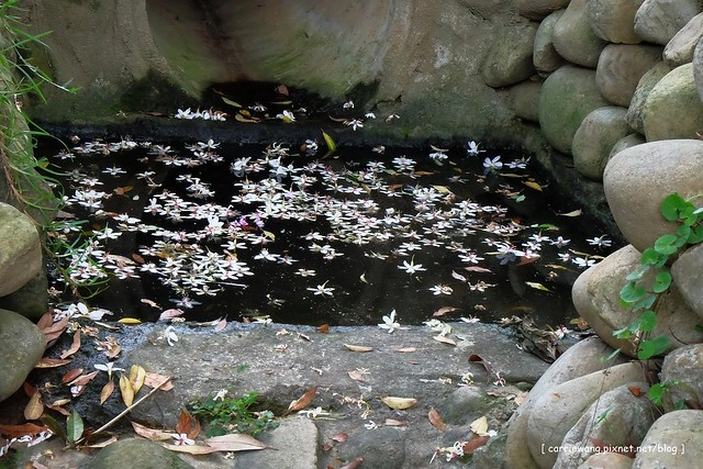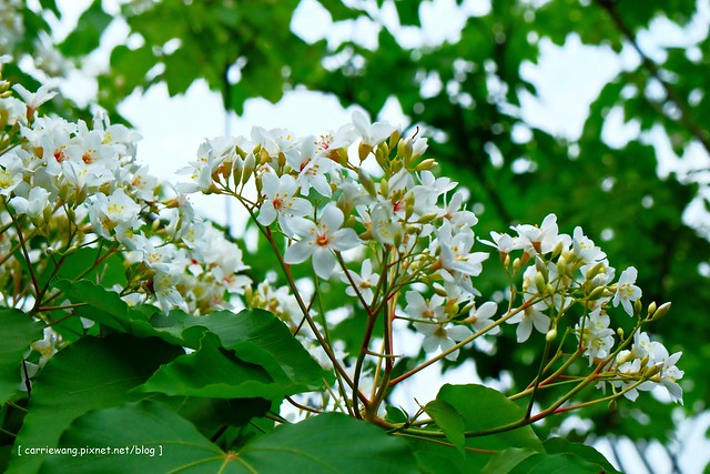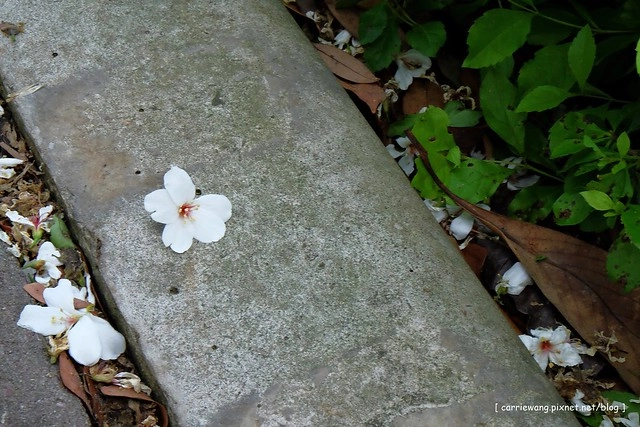 《桐花公園》的桐花已經開了7成,走在公園裡頭上不時會有桐花從頭上飄落下來,白色一片,整個很像下雪呀!