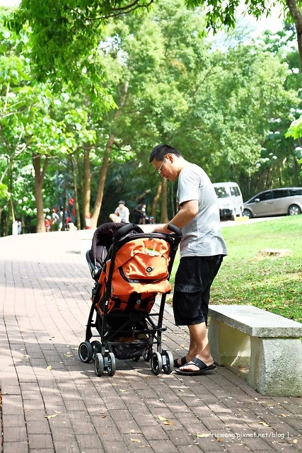 這天我們帶著新的嬰兒車出門,凱文推的很順手,而且媽媽包也可以直接放在推車上…
