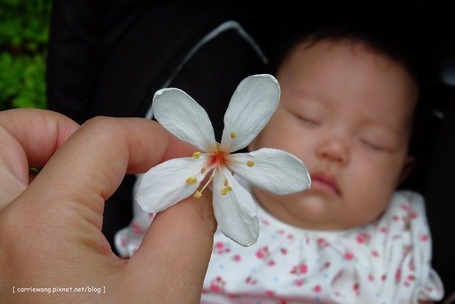 這天的小櫻桃很乖~有乖乖坐推車,而且累了就睡,讚讚!老木我都感動的快痛哭流涕了…
