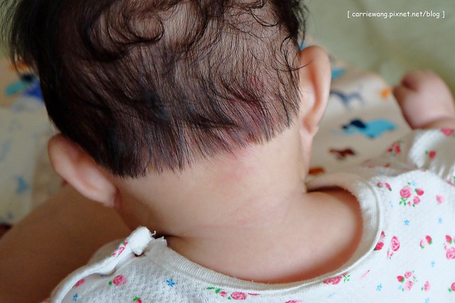 除了屁屁之外,因為最近天氣比較悶熱,皮膚容易過敏,所以小櫻桃脖子的地方就產生了一些紅疹…