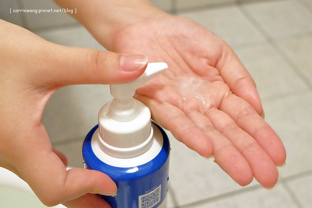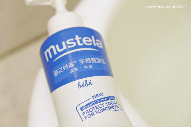 接著會再摸摸她的頭跟她說:「要洗頭頭囉!」…(用同一瓶多慕雙潔乳直接洗頭就行啦!)