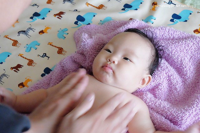 洗澡身體後,要用浴巾先擦乾,尤其是皺摺處,這樣才可以避免溼疹哦!記得要擦乾、要擦乾、要擦乾、要擦乾、要擦乾… (因為很重要,所以硬要說五次!!
