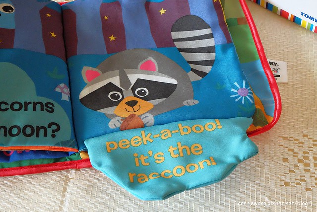 而且呀!這個木頭除了是可以翻下之外,同時它裡面的填充物也是塑膠材質,寶寶自已摸就會很驚訝書本居然可以發出沙沙的聲音哦!