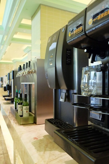 這排飲料很豐富哦!有啤酒、紅酒、白酒、咖啡和果汁…