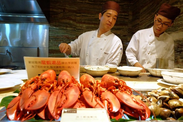 龍蝦是用湯品的方式烹飪,一個人一次只限拿一隻,一進來人潮就排很長,一直到用餐快結束還是排一堆人…