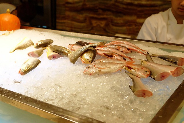這區的魚類大概有5種左右,可以自已挾取,再把桌上的夾子夾在盤子上,魚烤好後服務人員會送到座位區…